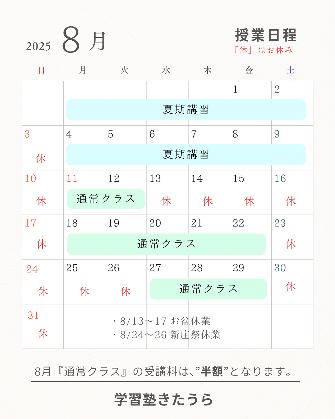 『夏期講習』は、学校の長期休暇を利用した”基礎固め”の講習会です。